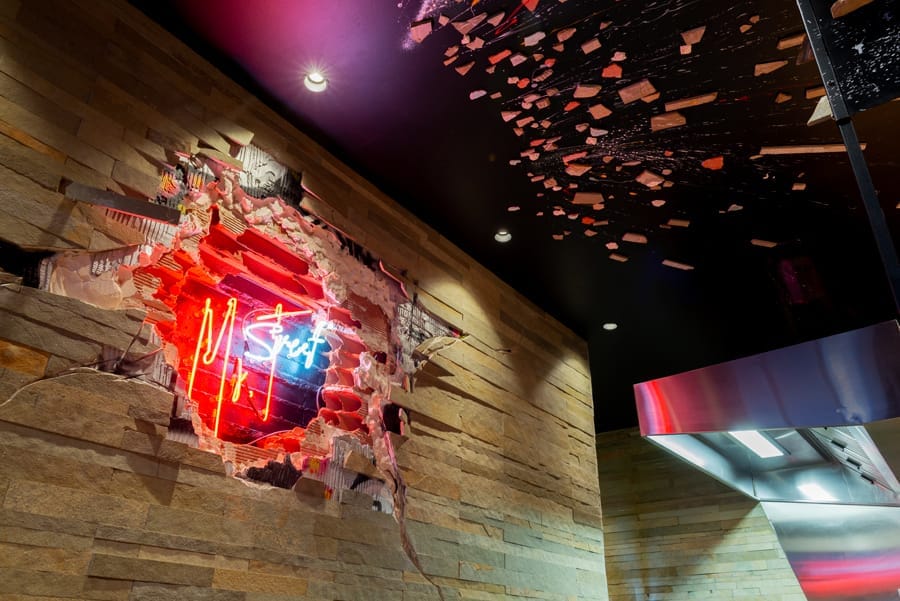 Installation, gravure, acrylique (aérosol), collage